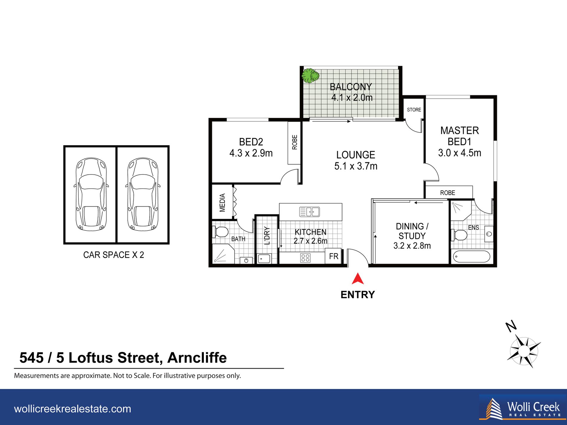 TWO BEDROOM PLUS STUDY WITH 2 CAR SPACES.
